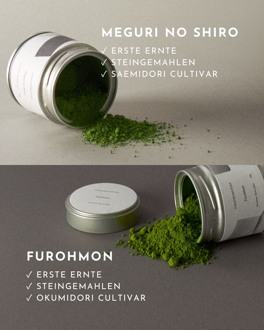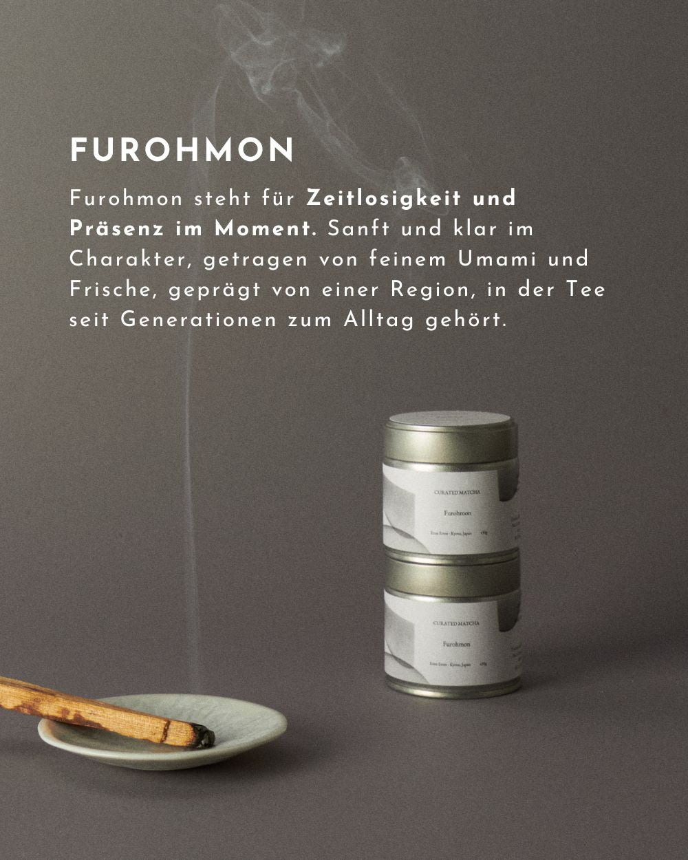 FUROHMON: Furohmon steht für Zeitlosigkeit und Präsenz im Moment. Sanft und klar im Charakter, getragen von feinem Umami und Frische, geprägt von einer Region, in der Tee seit Generationen zum Alltag gehört.