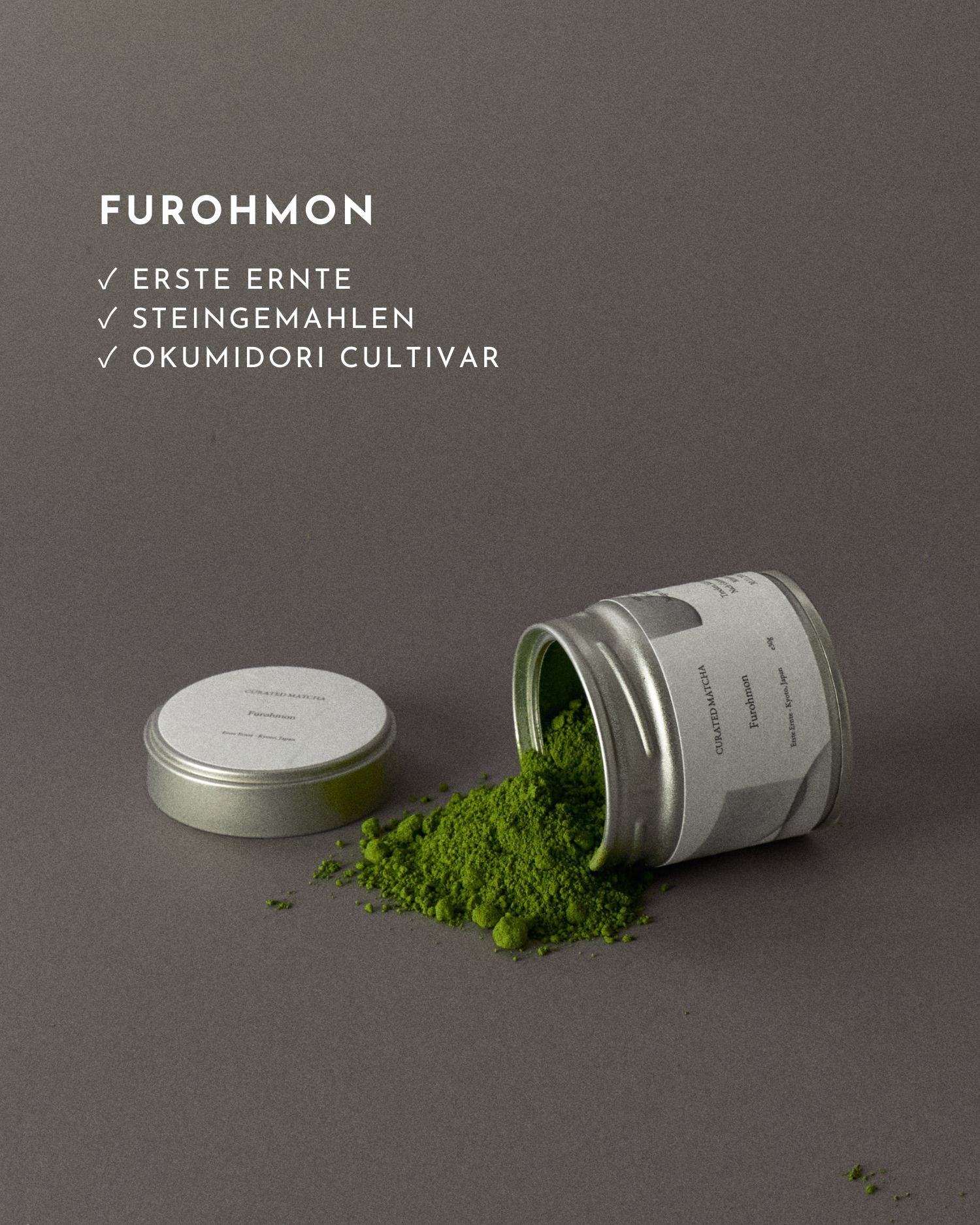Furohmon stammt aus Wazuka, Kyoto. Der Tencha wird dort aus der Sorte Okumidori gewonnen, 22 Tage beschattet und anschließend traditionell steingemahlen.